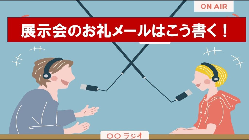 展示会後のフォローにおいてお礼メールは重要です。展示会のお礼メールについて、ラジオ風にわかりやすく解説しています。