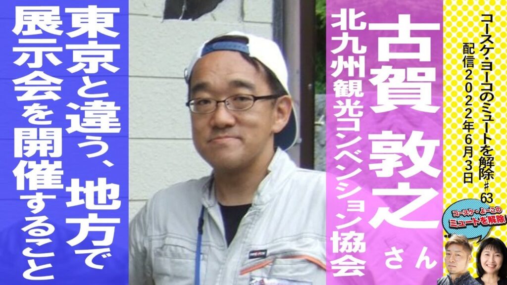 ゲスト:(公財)北九州観光コンベンション協会 事業部長 古賀敦之さん。展示会の自主事業部門がある西日本総合展示場で、30年に渉り、展示会やイベントの開発運営に従事。開発した主な展示会に「西日本プラントエンジニアリングショウ」「エコテクノ」「水素エネルギー先端技術展」など。2015年にBEXCOとのMOUを締結。K-RIP(九州環境エネルギー産業推進機構)企画部会幹事、北九州循環経済研究会幹事など、幅広いネットワークで産業と展示会を連動させ、地域活性化に取り組んでいる。
